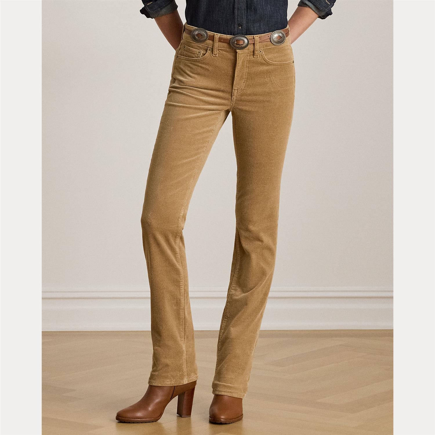 Cut for a straight, streamlined silhouette and rendered in stretch-infused corduroy for subtle texture, these mid-rise pants embody everyday sophistication.