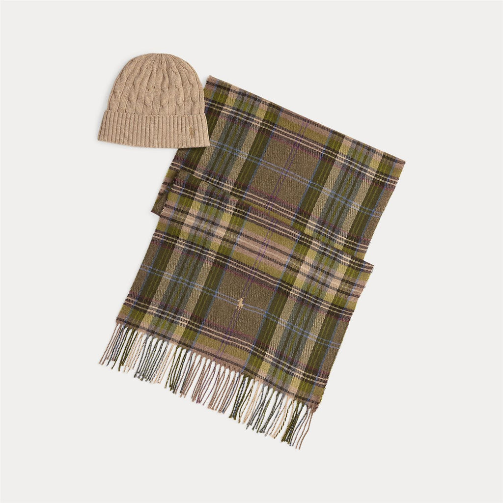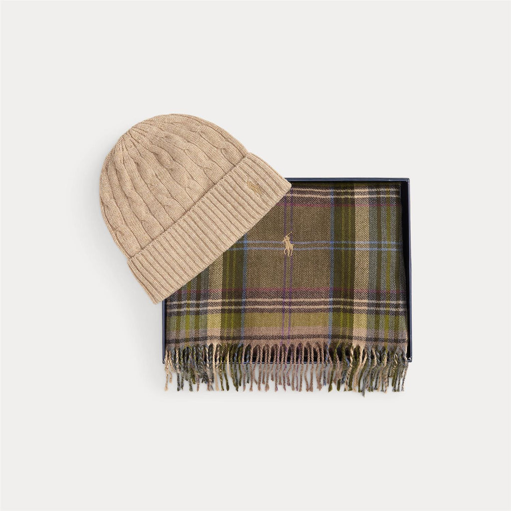 CABLE-KNIT BEANIE & PLAID SCARF GIFT SET