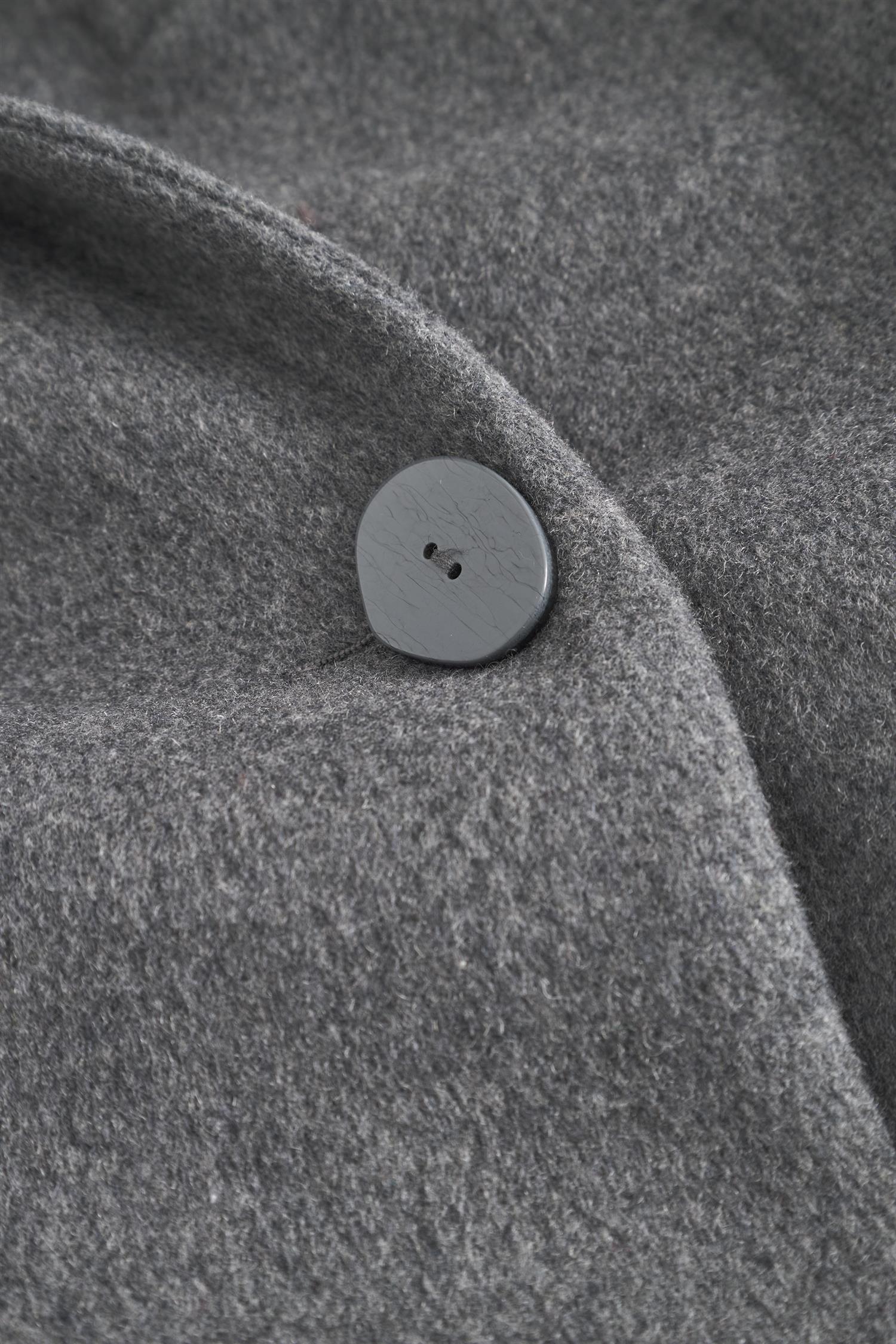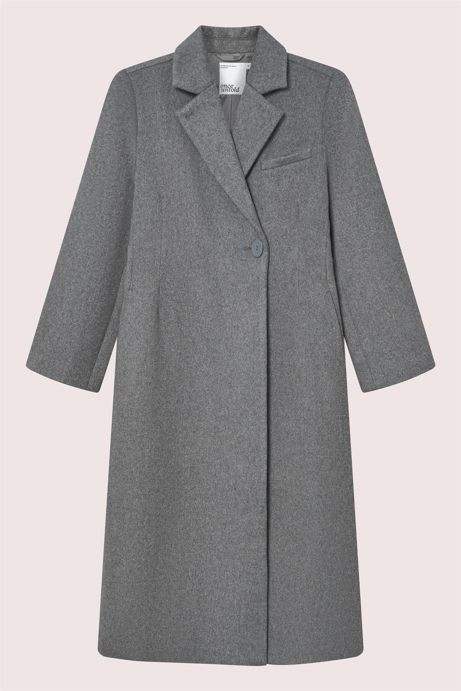 Iris Tailored Coat er en stilren og moderne jakke som kombinerer komfort med eleganse. Den mørke grå melange-fargen gir et tidløst preg, perfekt for høst- og vintermåneder. Jakken er laget av en blanding av polyester og ull, noe som gir både varme og holdbarhet.