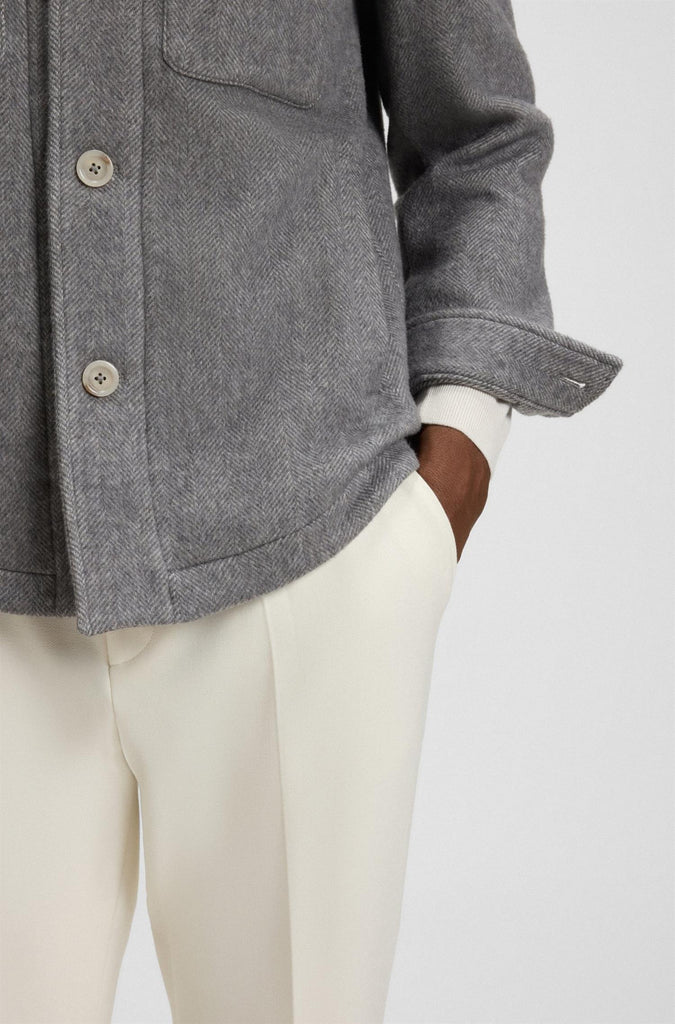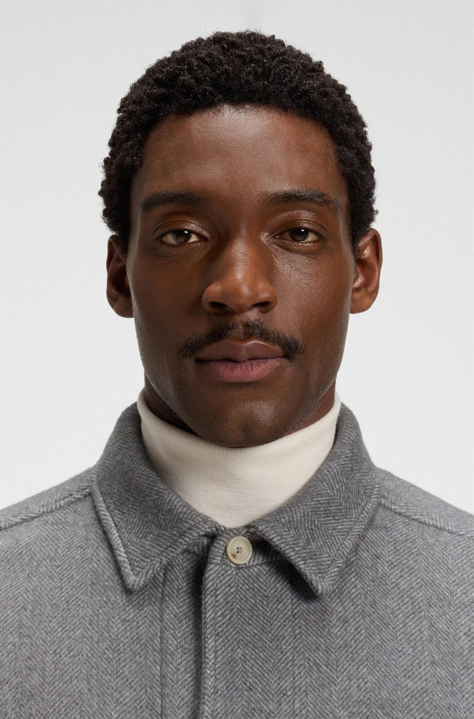 Layer up in comfort with this BOSS Menswear overshirt, blended with soft, cosy wool. Cut to a relaxed fit. Sophisticated textured herringbone pattern. This product contains at least 60% better raw materials. This product is partially made with recycled wool. For certain materials, like wool, we mix recycled and virgin content so we can provide a high-quality product.