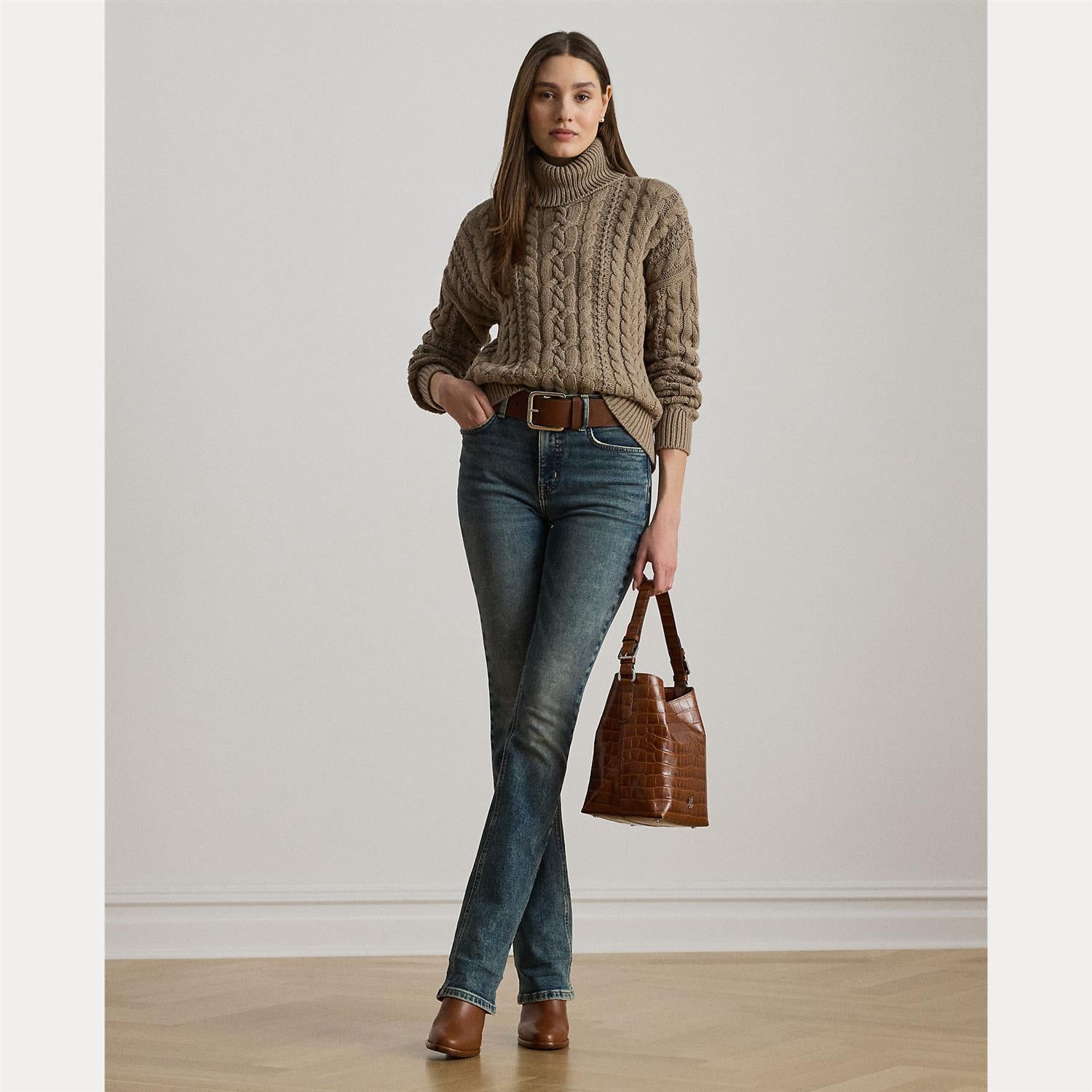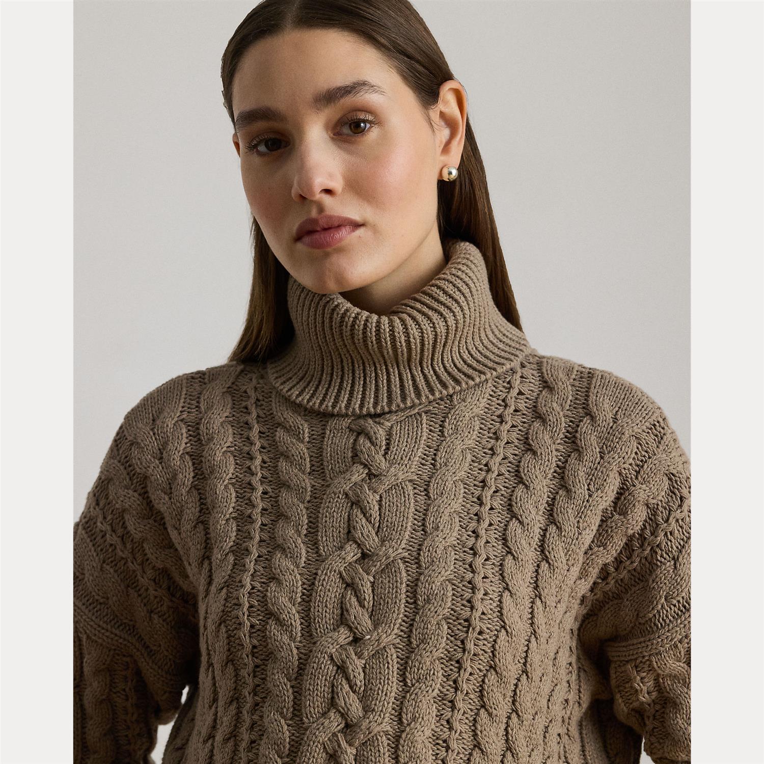 A timeless cold weather staple, this turtleneck sweater showcases a relaxed-fitting, cable-knit silhouette in a soft cotton blend.