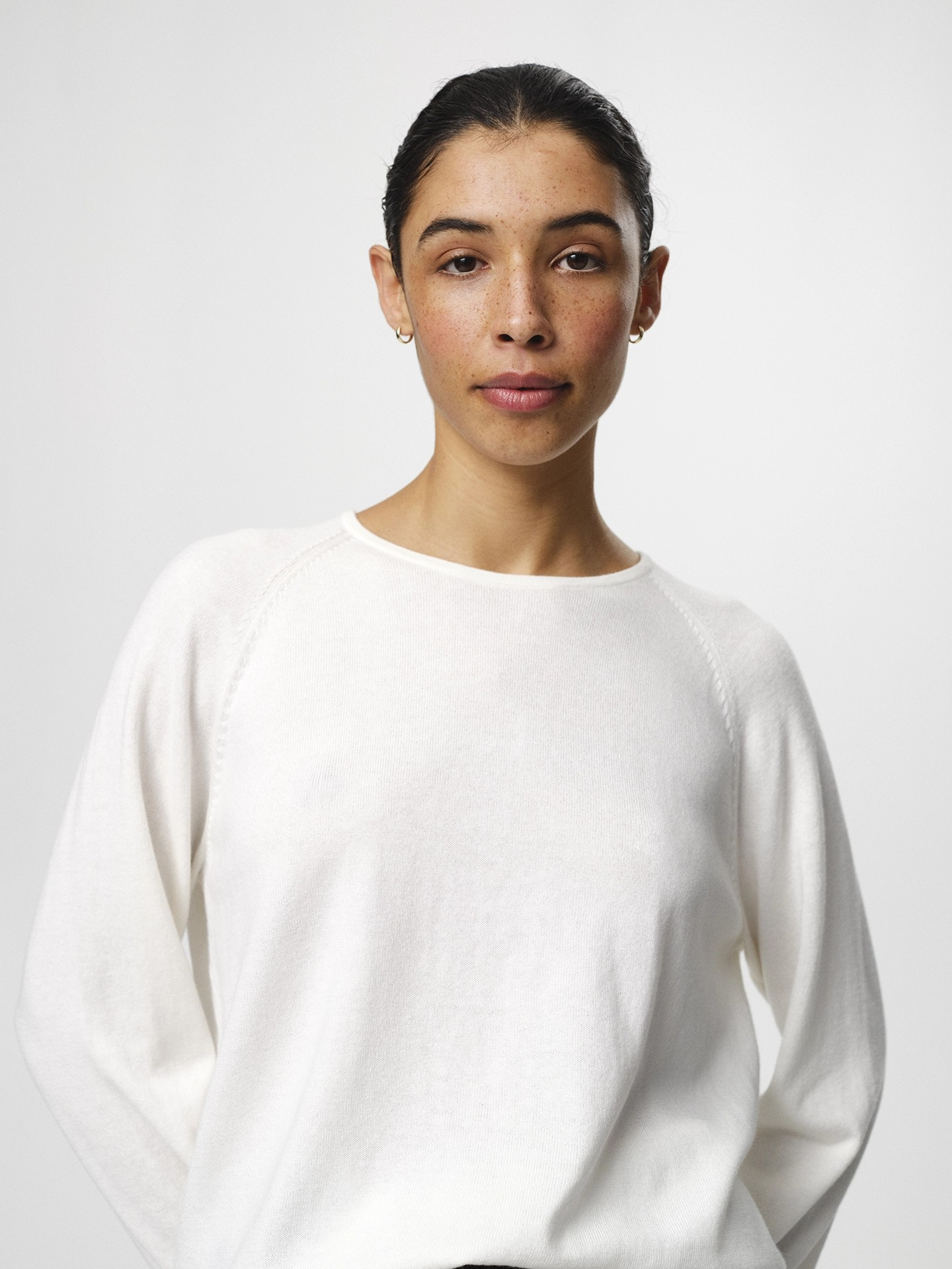 Kate V-Neck is a refined everyday knit designed for effortless layering. Made from a soft wool–cotton blend, it combines the natural warmth of wool with the lightness and breathability of cotton. The relaxed silhouette is finished with a clean V-neckline and subtle dropped shoulders for an understated, modern feel. Style it over a T-shirt or wear it on its own with tailored trousers or denim.