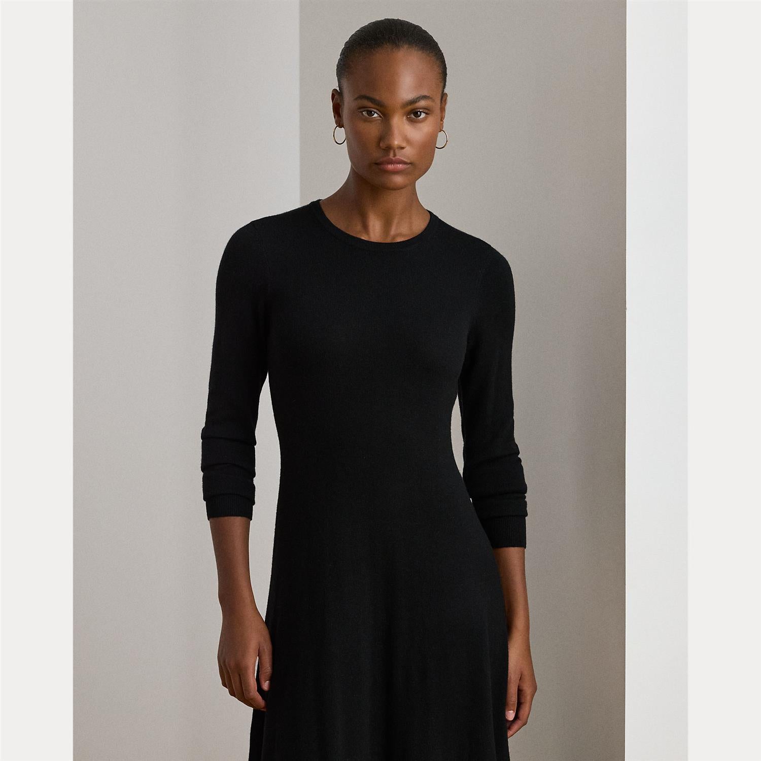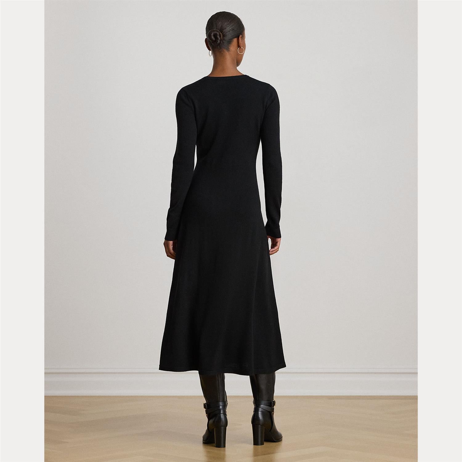 A timeless addition to your cool-weather wardrobe, this crewneck sweater dress features a midi-length A-line silhouette rendered in soft, worsted wool.