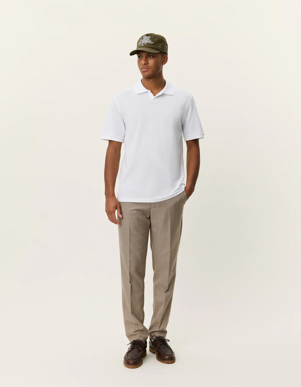 En enkel hverdags-polo laget i myk bomullspiké. Avsluttet med ton-i-ton brystbroderi og sidesplitter for økt bevegelsesfrihet.