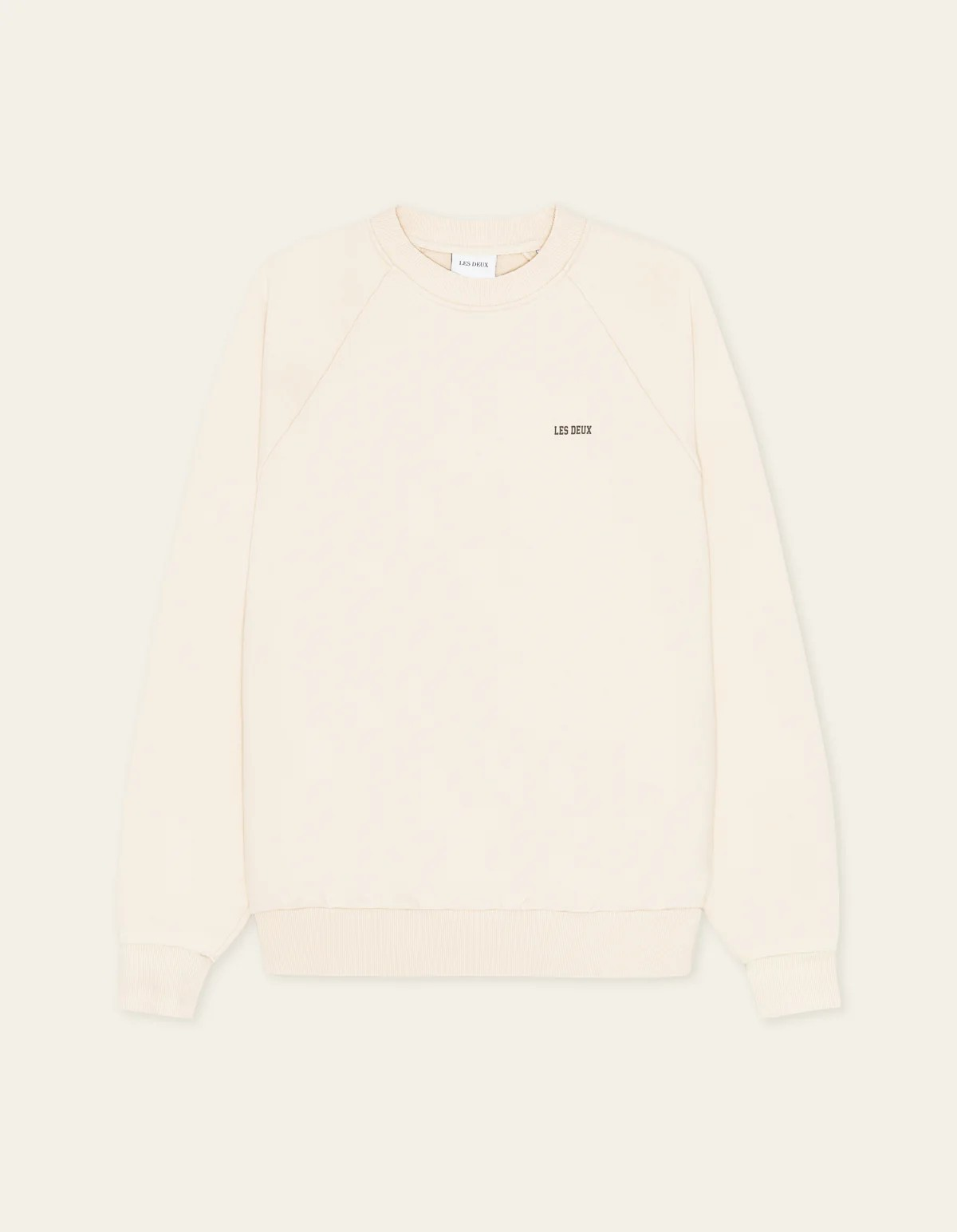 En avslappet crewneck i loopback terry med slitt, innvasket finish. Det lille kontrast brysttrykket holder det minimalistisk, mens teksturen gir særpreg.