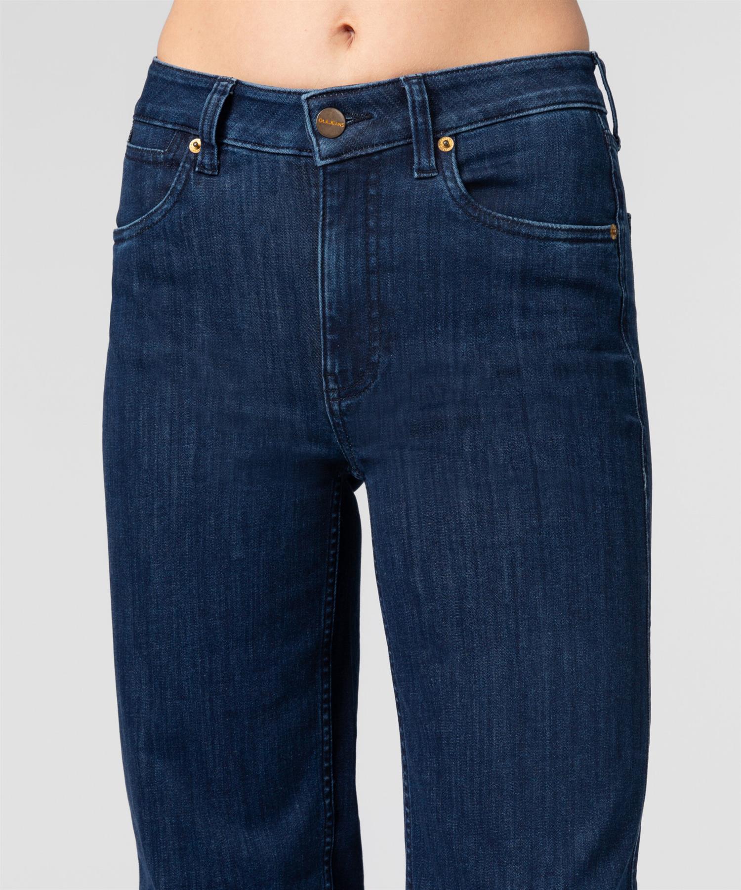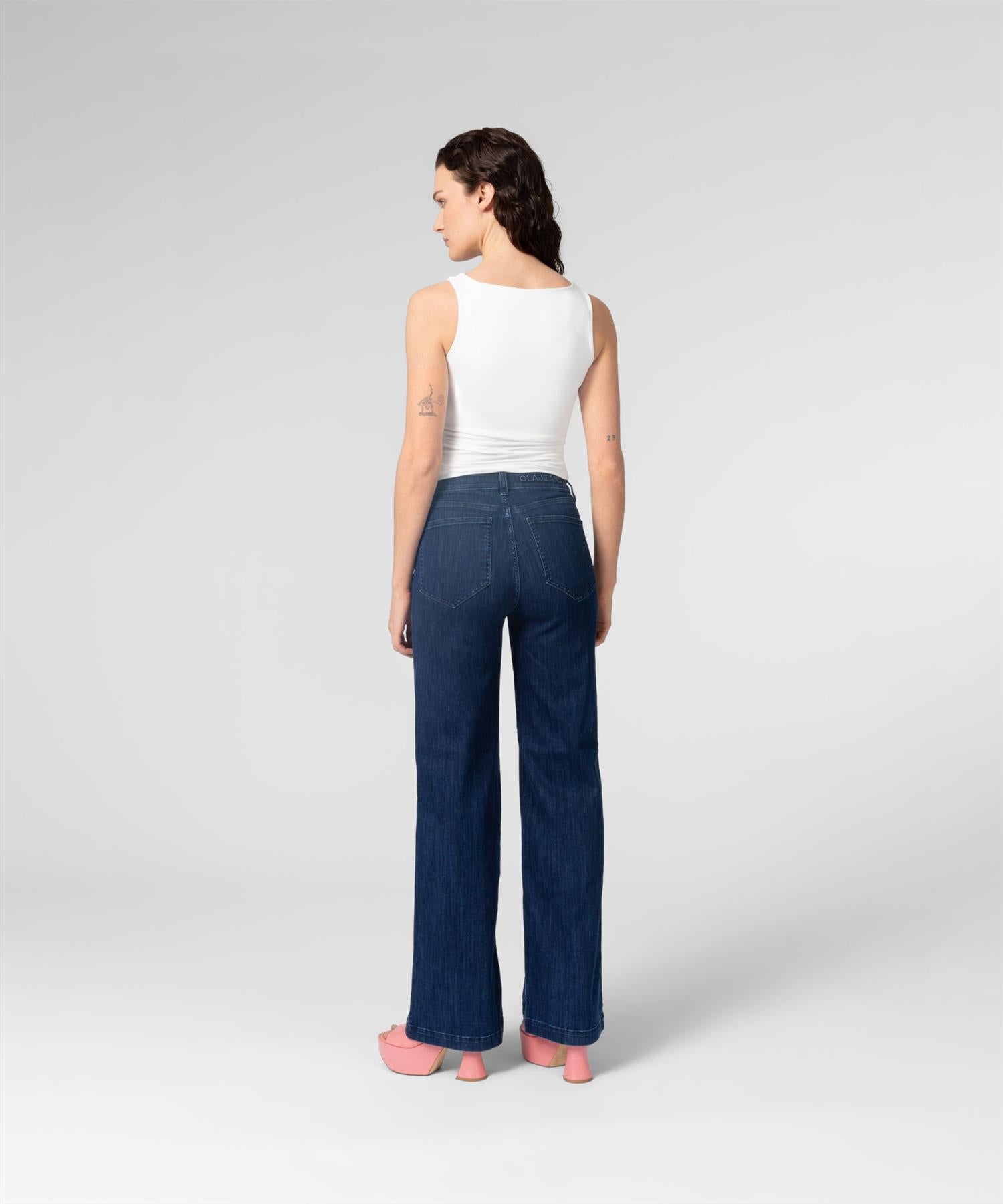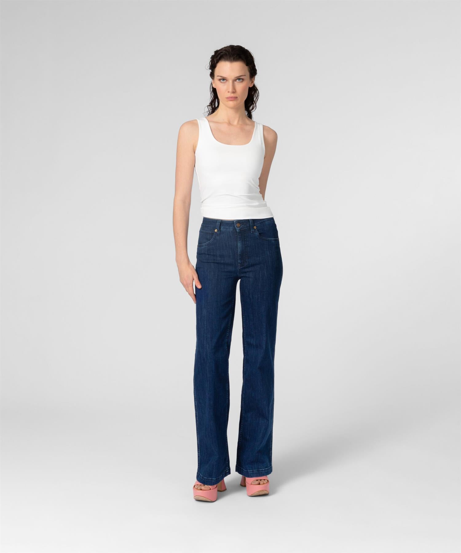 Olajeans høyt elsket wideleg jeans er en av bestselgerene og denne høsten i utgaven av en klassisk mørk blå denim vask. Jeansen gir en super flatterende siluett og det lille ekstra løfta til rumpa. Modellen er høy på midjen og smal over hoften, hvor den vider ut fra lår til kne og ytterligere ned til enden av buksebenet.