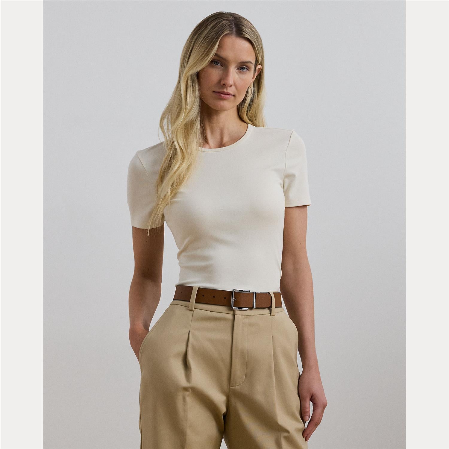 Crafted with stretch-infused cotton, this tee is adorned with Lauren Ralph Lauren’s signature embroidered monogram at the hem.