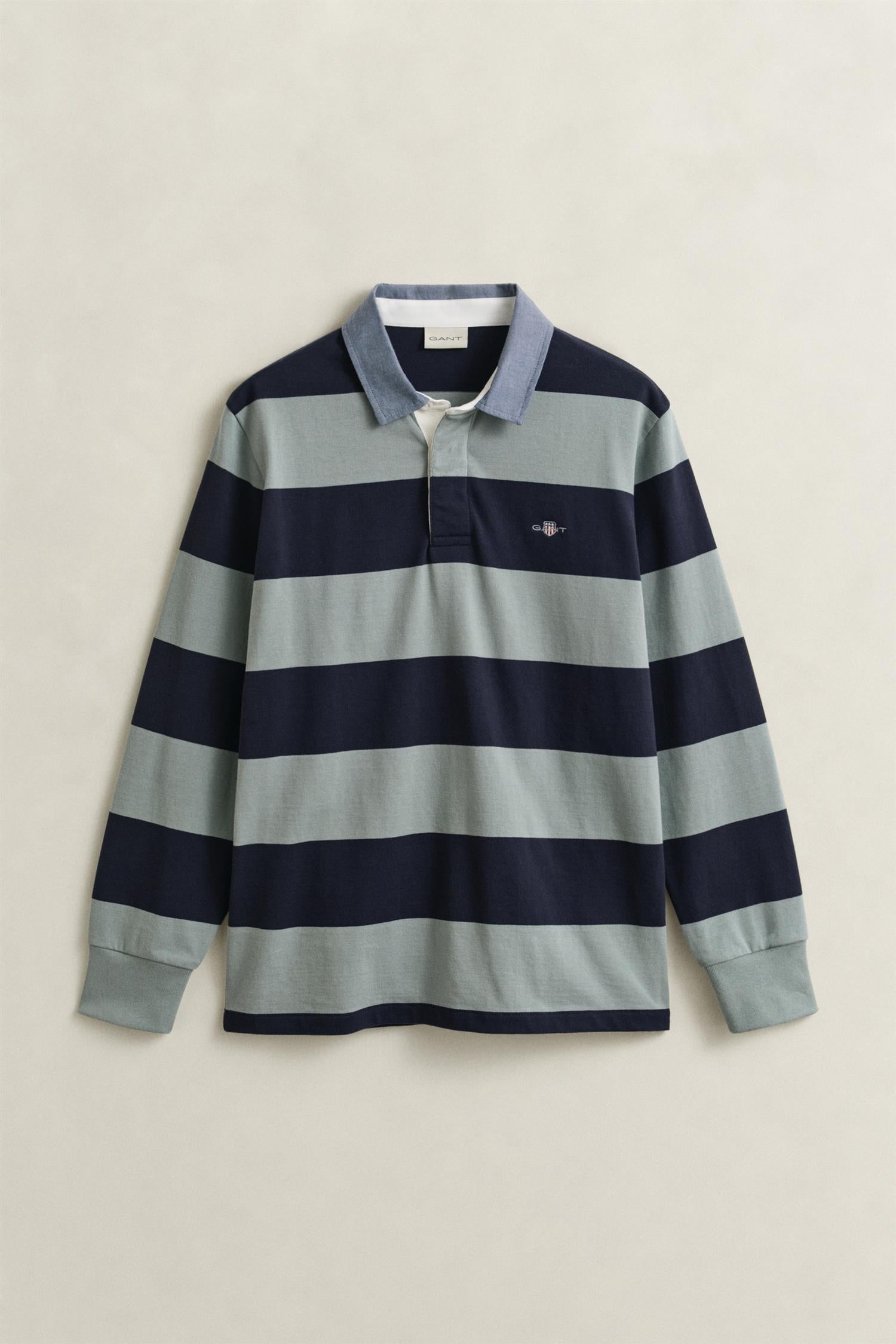 Reg Chambray Stripe Heavy Rugger er en tidløs og klassisk skjorte laget av 100% bomull. Den har en regulær passform og er dekorert med en liten GANT-skjoldgrafikk brodert på brystet. Den stilige twillkragen og den klassiske tre-knaps placket gir et elegant preg, noe som gjør denne skjorten til et allsidig valg for enhver anledning.