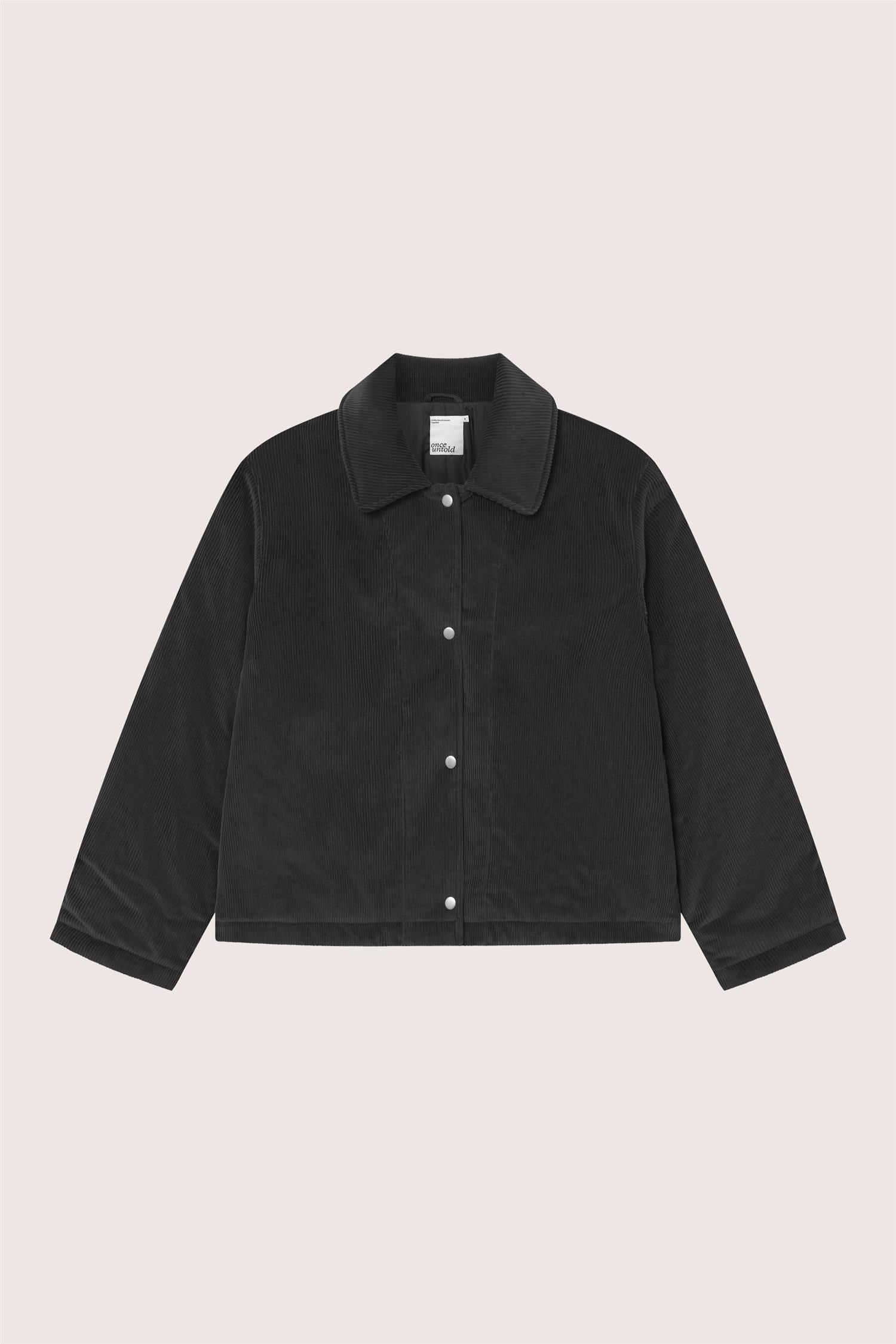Donna Cord Jacket er en stilren og komfortabel jakke laget av 100% bomull, perfekt for å tilføre et moderne preg til din garderobe. Den svarte fargen gjør den enkel å kombinere med ulike antrekk, og det myke polyesterfôret gir ekstra komfort.